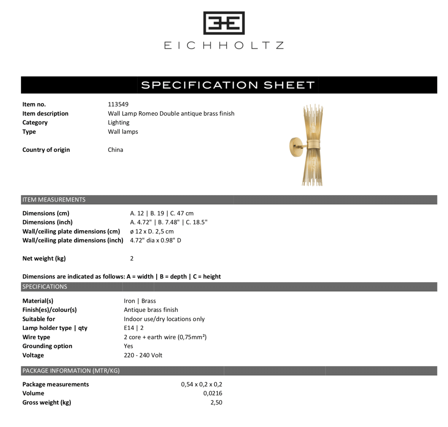 Romeo, en vägglampa som stoltserar med en slående design, och kastar ett dekorativt ljus på väggen och omgivningen. Denna moderna vägglampa har en antik mässingsfinish och passar många olika interiörer och inredningar.