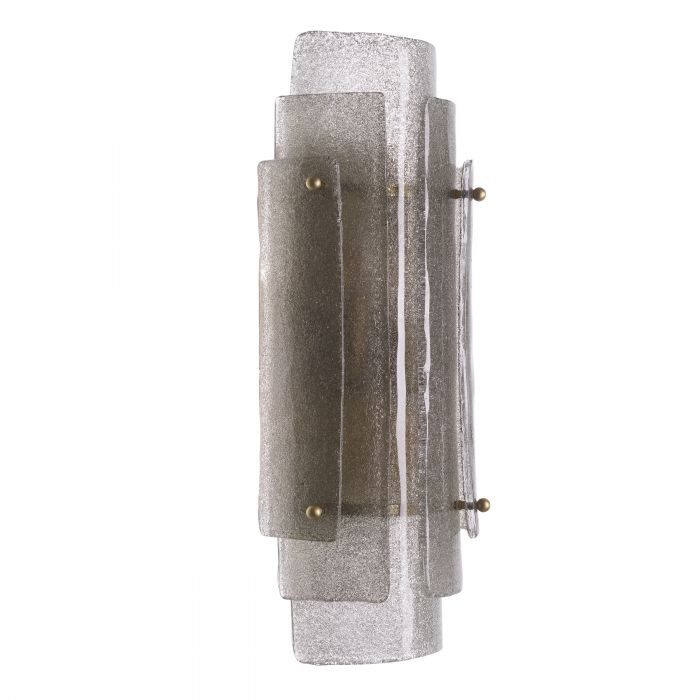 Böjda lager av handblåst glas viks försiktigt omlott runt varandra för att bilda vägglampa Sylvester. Den återhållsamma elegansen hos denna distinkta väggprydnad är tillräckligt mångsidig för att kunna integreras i vilken modern inredning som helst.