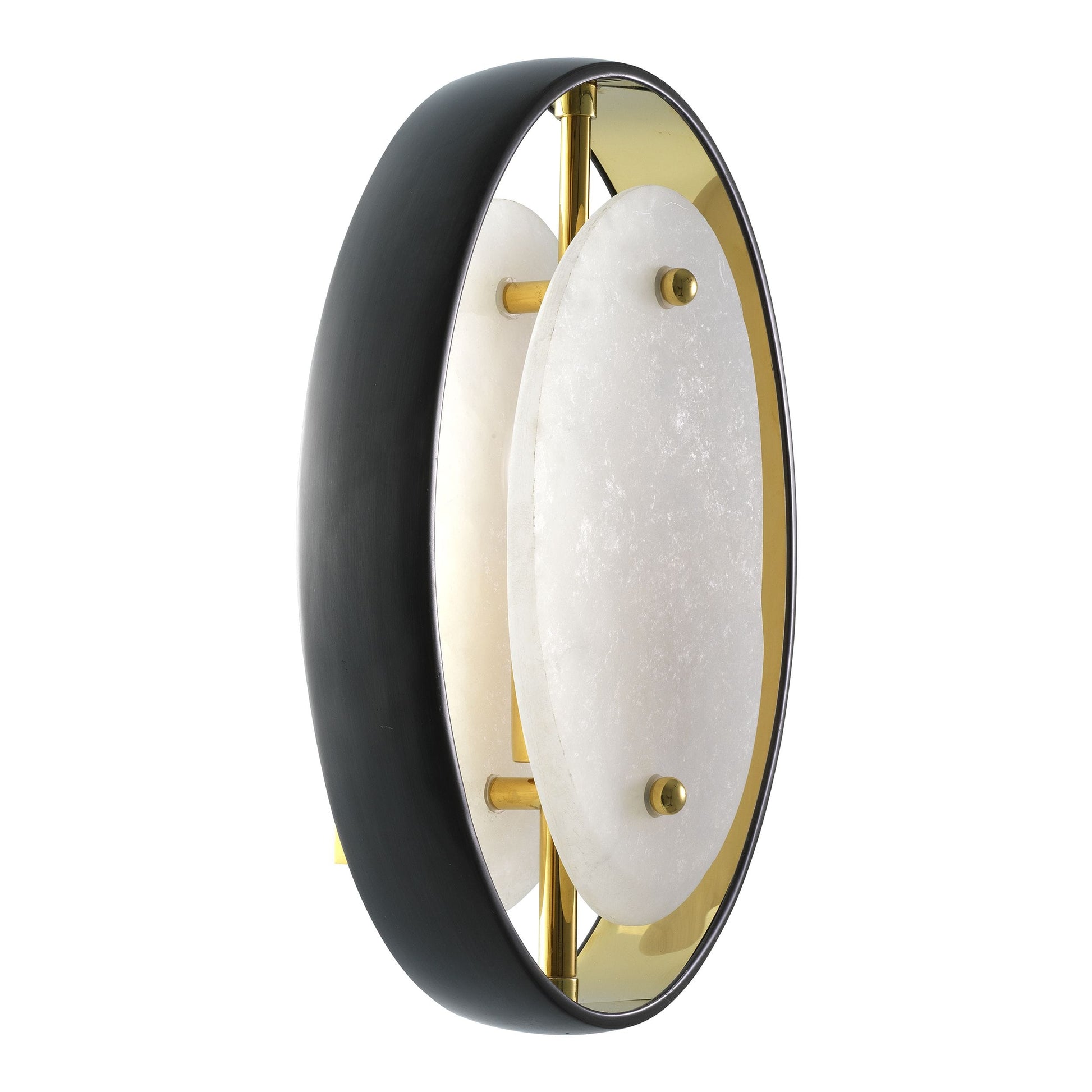 Vägglampa Trissoni från Eichholtz är en otroligt snygg och välformad designlampa med modernt, men ändå tidlöst utseende som gör att den håller i generationer. Läcker kombination av svart och guld med exklusiv, vit, alabastersten.