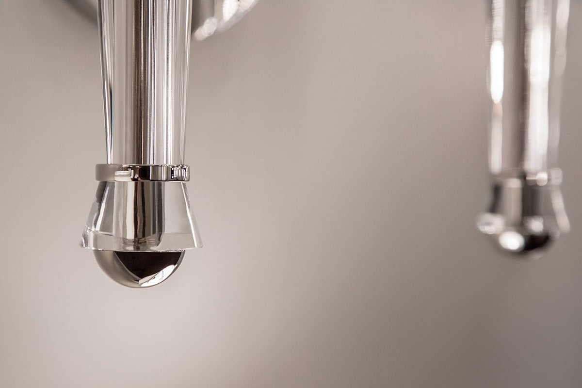 Crystal and metal combine to superb effect. Volta explores this beautiful combination of materials in a traditional form. Alessandro Volta’s discovery of our ability to chemically generate electricity and conduct it through copper is still at work in this electric candle-holder.