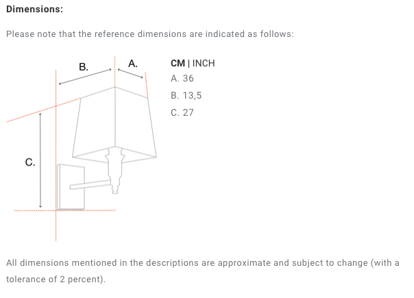 | Shade dimensions | 36 x 11 x H. 18 cm |