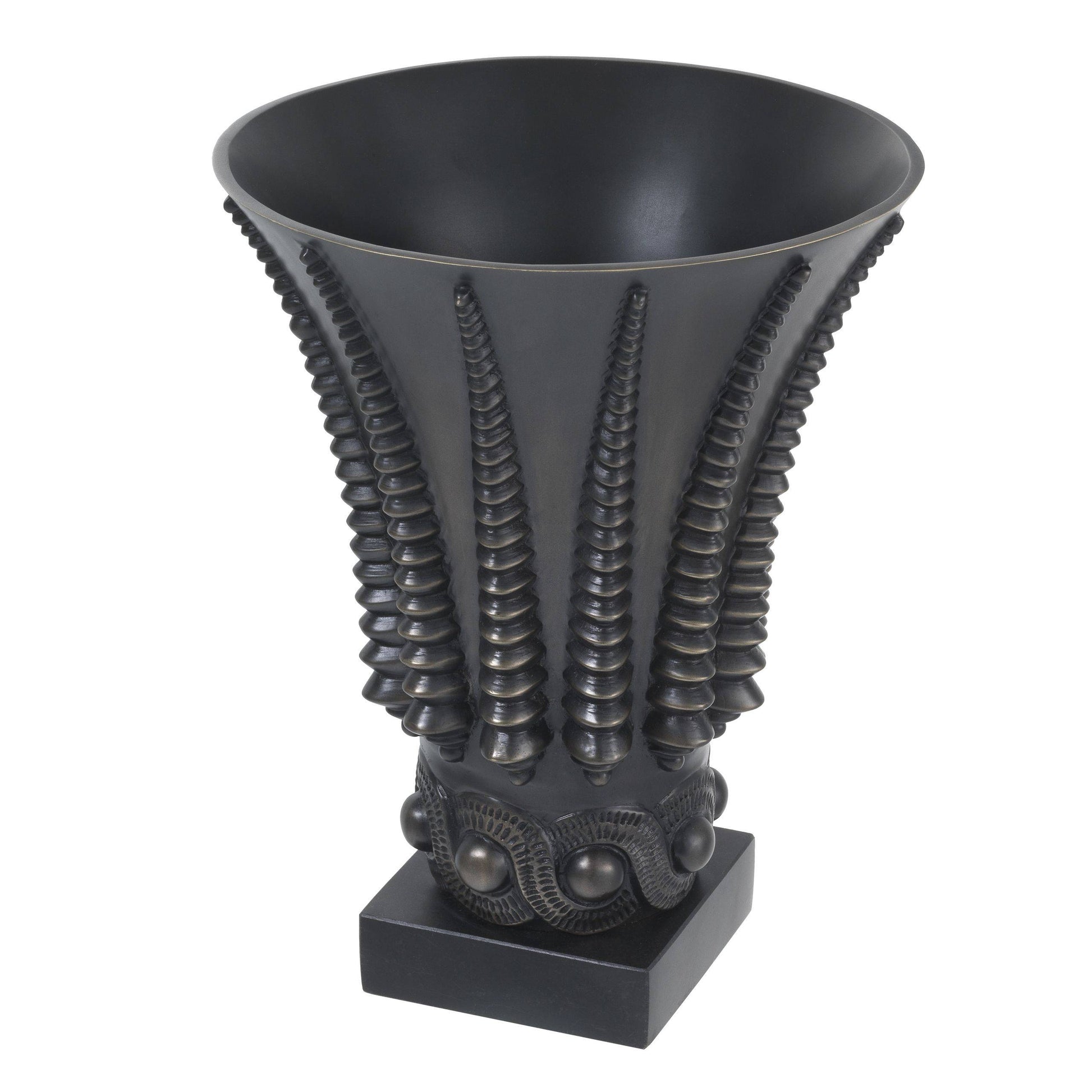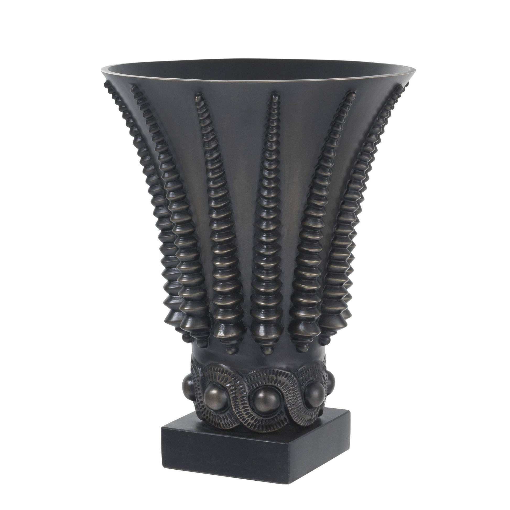 Härligt designad i mässing som fått sig en läcker bronsfinish. Mycket inspirerad av 1920-talets Art Deco men med modern touch bjuder denna läckra inredningsdetalj på fina former och spännande detaljer. Fot i Svart granit.