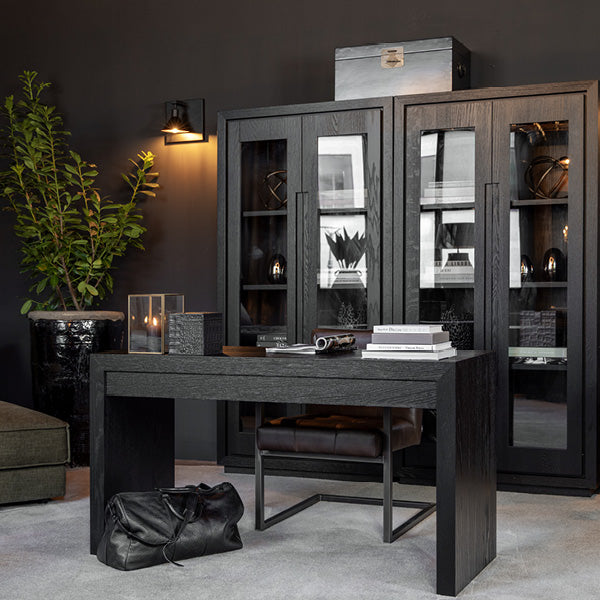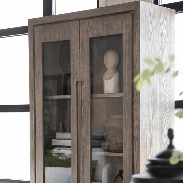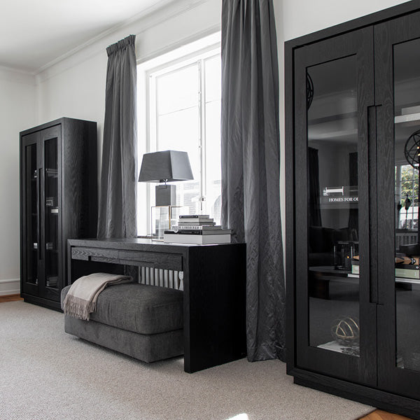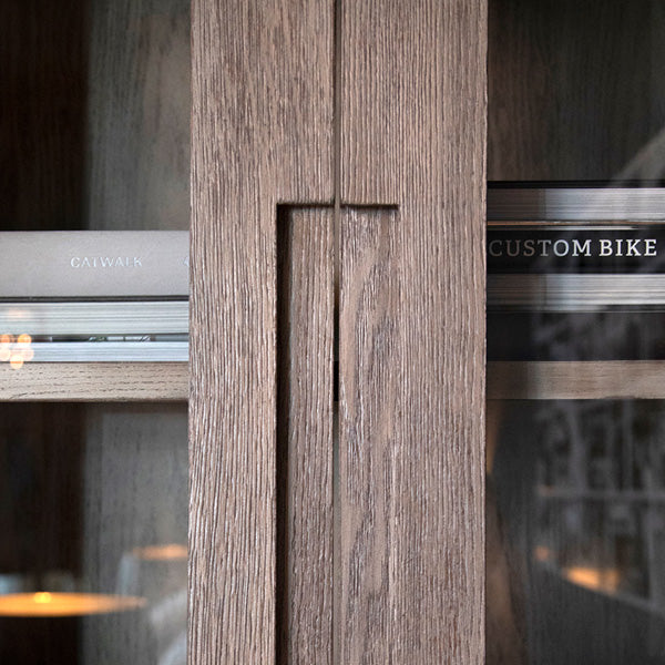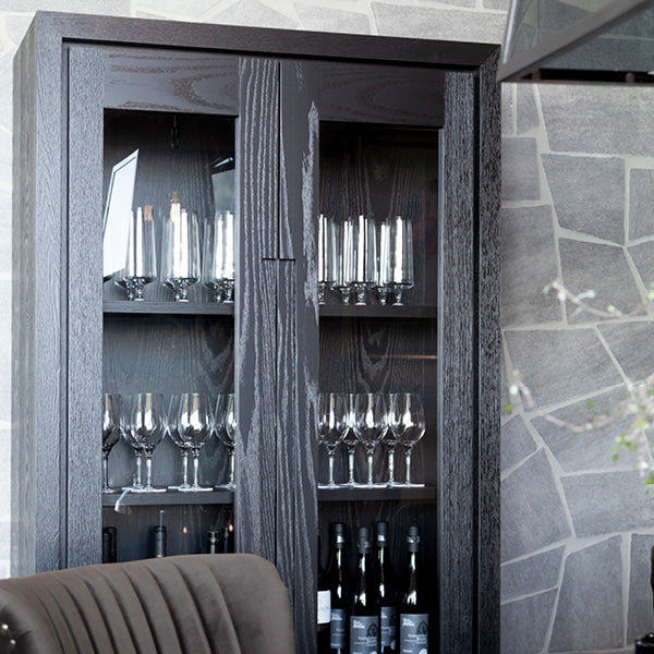 Ett mycket gediget och härligt vitrinskåp med massiv känsla och läcker design. Tre hyllplan och härlig ekfanér med en snygg finish och design.
