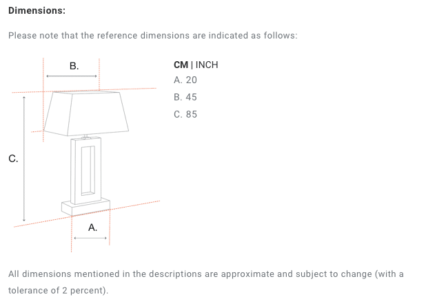 | Shade dimensions | ø 43 x H. 28 cm |